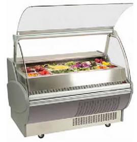 - Fan assisted refrigeration display and storage designed for sandwich or salad display, presentation and preparation